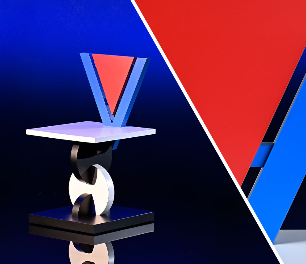 Intertwining Amish craftsmanship and Memphis Milano’s visual and imaginative essence into a harmonious symphony of creativity.
